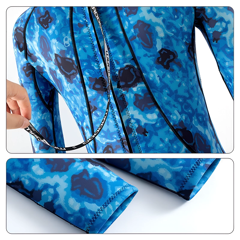 El diseño de camuflaje te oculta de las criaturas marinas y peligros. Su construcción duradera protege tu piel de picaduras, raspones y objetos filosos.