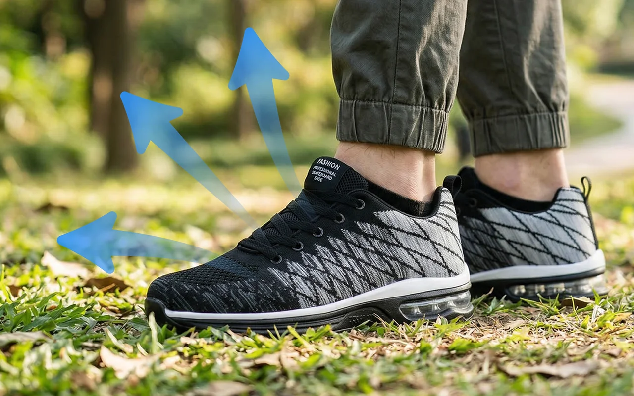 La malla transpirable permite que el aire fluya libremente en todo momento. El calor y los pies sudorosos ya no causan incomodidad.
