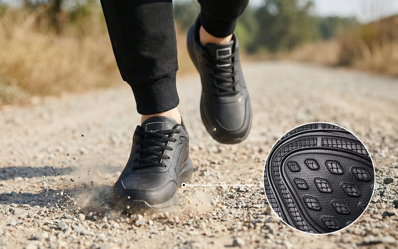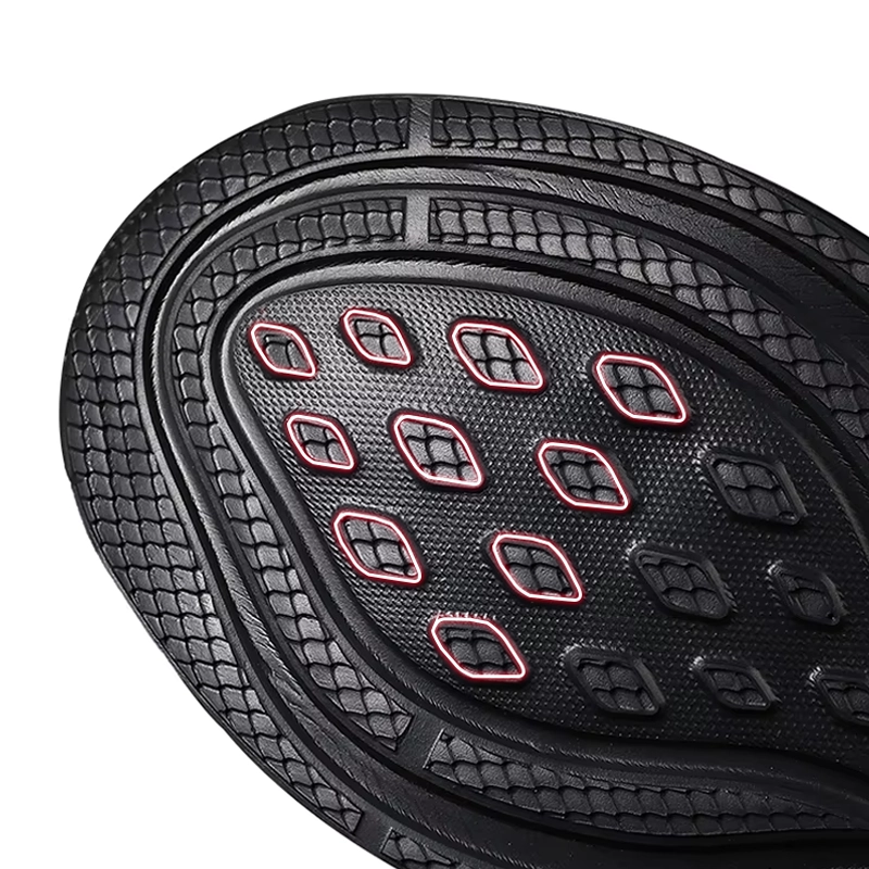 El patrón especial de la suela te mantiene seguro en caminos mojados. Muévete con confianza sobre cualquier superficie sin preocuparte.