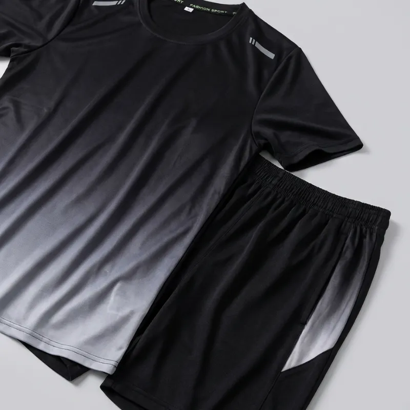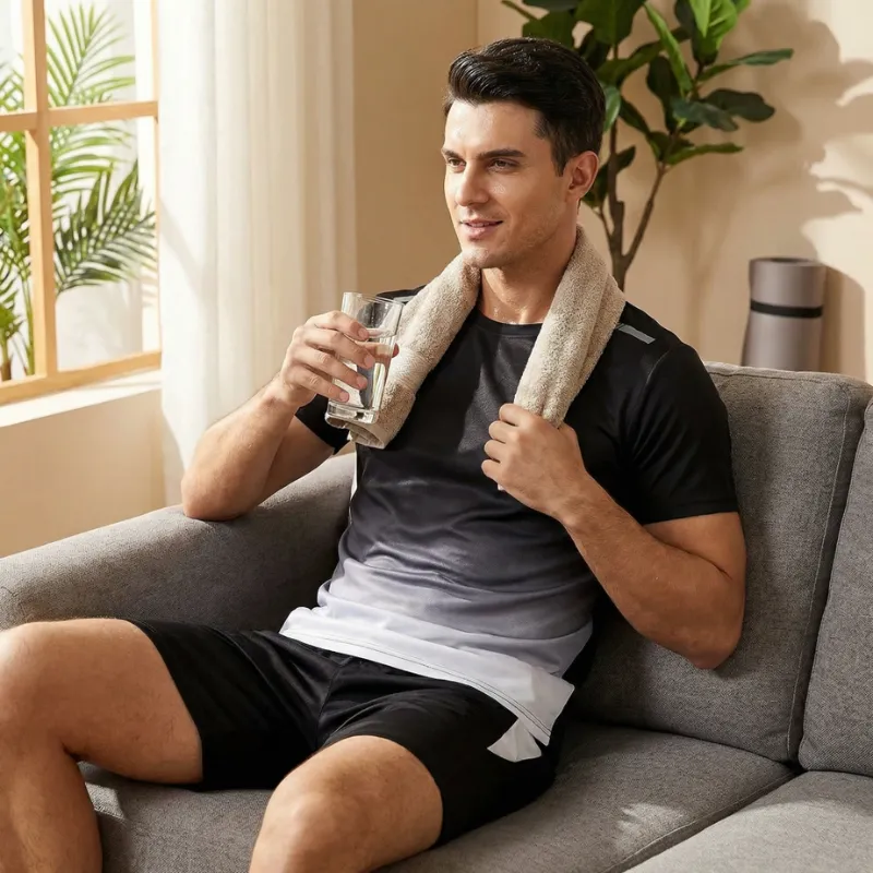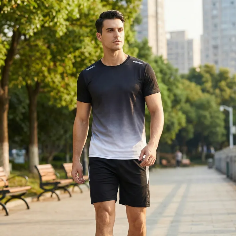 Lo compré para los entrenamientos de fin de semana de mi esposo. El degradado de color se ve muy bien, se mueve con facilidad al hacer estocadas y flexiones, y la tela se seca en minutos.