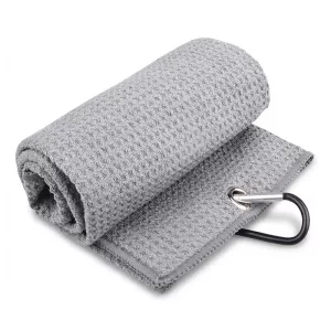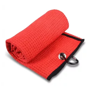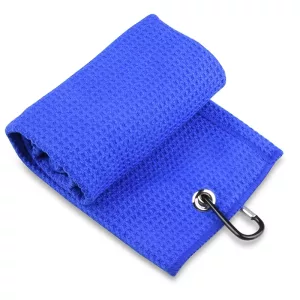 Estoy muy contento con esta toalla. El clip la mantuvo segura todo el día y mis palos estaban limpios después de cada ronda. Se mantiene seca incluso después de una tarde lluviosa.