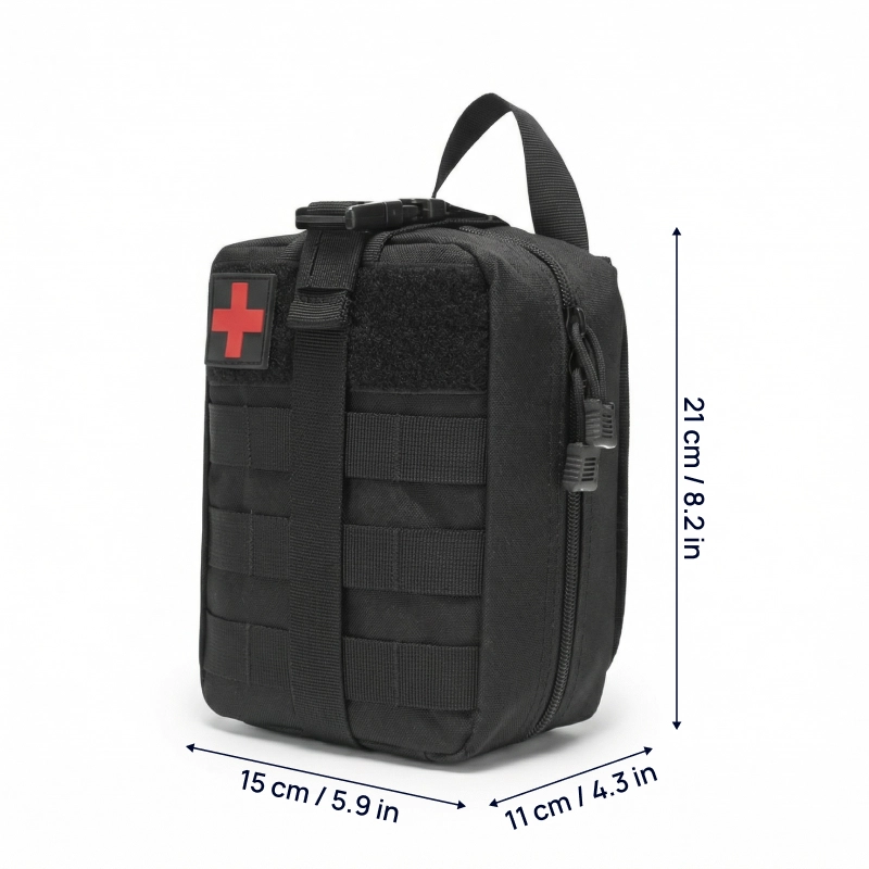 Trabajo en seguridad y lo llevo en mi chaleco. El diseño de desprendimiento rápido me permite entregar toda la bolsa a un compañero, y la distribución ahorra segundos valiosos.