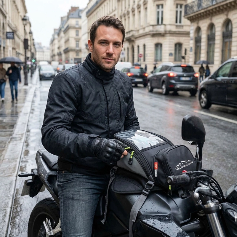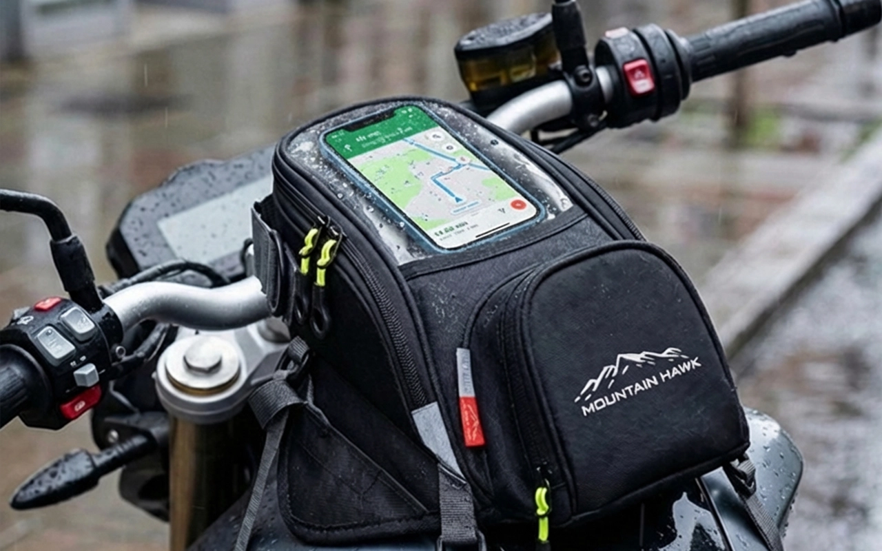 Monté esta bolsa de depósito en mi moto de uso diario y ahora mi teléfono, cartera y llaves del trabajo están siempre a mano. La ventana transparente hace que revisar los mapas sea mucho más fácil.