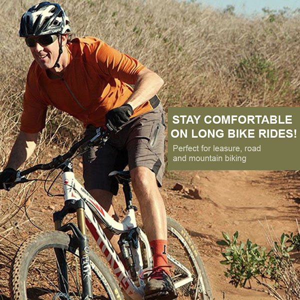 Con un diseño de múltiples bolsillos, estos pantalones cortos acolchados para ciclismo masculino pueden almacenar fácilmente tu smartphone, llaves, snacks y otros objetos. Además, los pantalones cortos de ciclismo tienen un logo reflectante que garantiza tu seguridad al rodar de noche. También puedes elegir el modelo que incluye pantalones cortos interiores con un acolchado de gel. Este proporciona buena protección y ayuda a evitar lesiones causadas por el ciclismo.