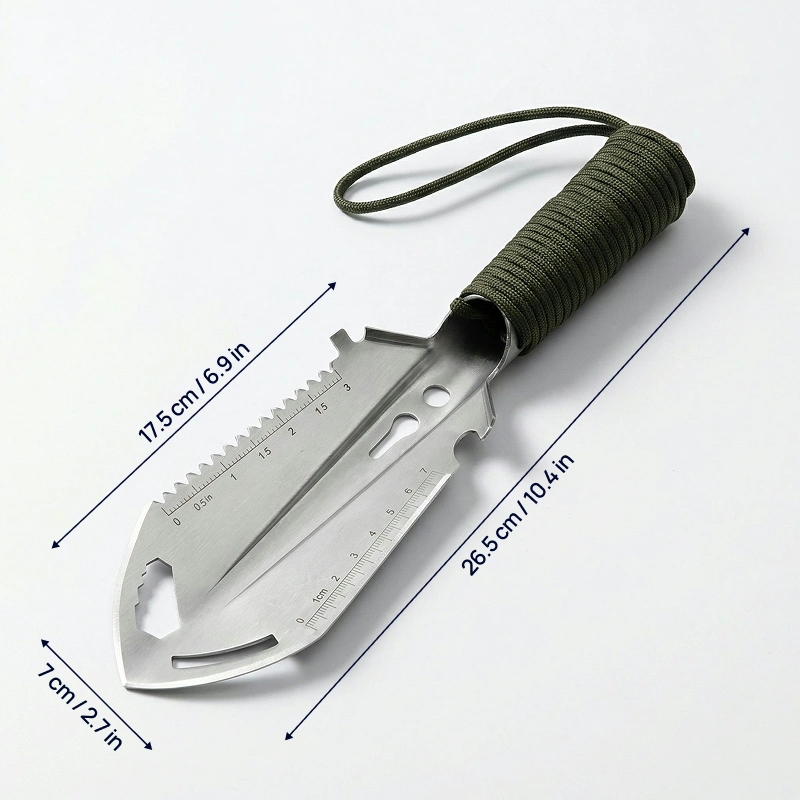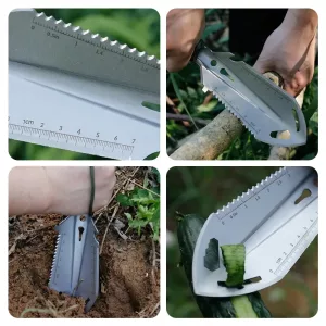 Enfréntate a cualquier aventura salvaje sin preocupaciones ni complicaciones. La pala de camping Threo hace que cada tarea al aire libre sea rápida y sencilla. Cava, corta, mide o sierra con una sola herramienta resistente. Disfruta de la tranquilidad de saber que estás listo para cualquier cosa. Mantente preparado dondequiera que te lleve tu viaje.