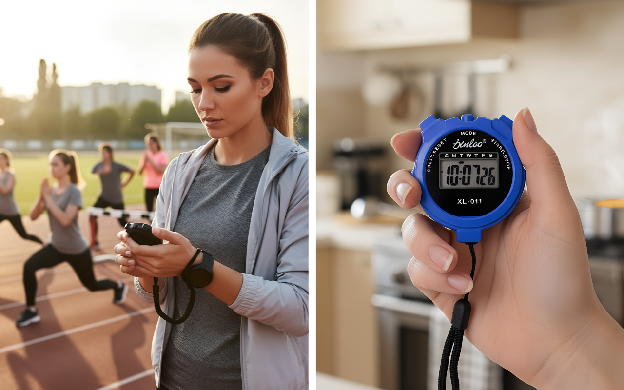 Cambia rápidamente entreómetro, temporizador y modos de conteo. Un dispositivo compacto cubre deportes,es o necesidades de cocina.