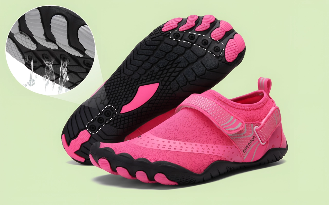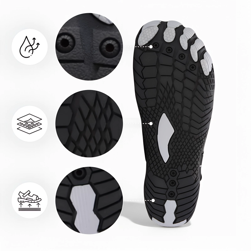 Los orificios de drenaje eliminan el exceso de agua rápidamente, manteniendo los pies secos. No más molestias o ampollas por la humedad prolongada.