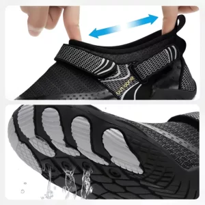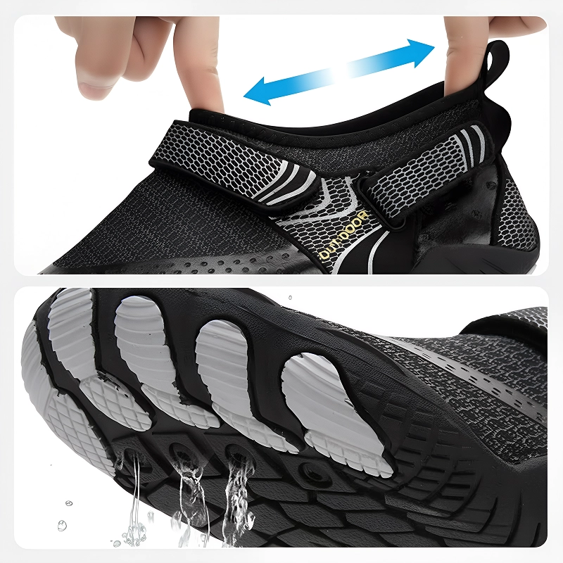 Las suelas especiales evitan resbalones o caídas no deseadas en superficies mojadas. Siéntete seguro al caminar, nadar o explorar senderos rocosos.