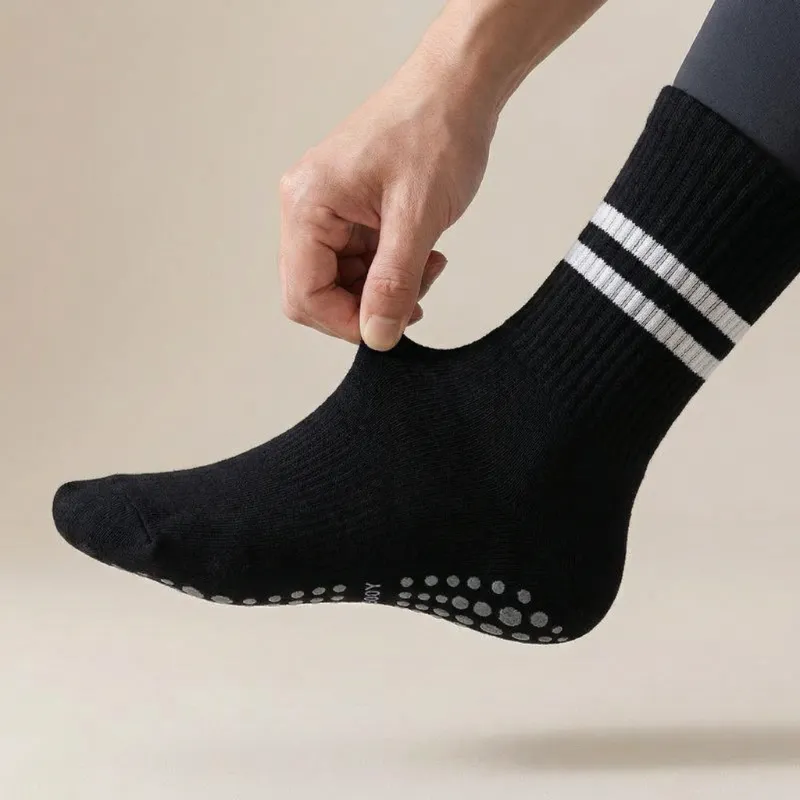 Siéntete seguro durante estiramientos en interiores o rutinas de baile. Los calcetines Threo ayudan a prevenir resbalones no deseados, mejorando tu estabilidad. La suave mezcla de algodón mantiene los pies frescos y secos todo el día.