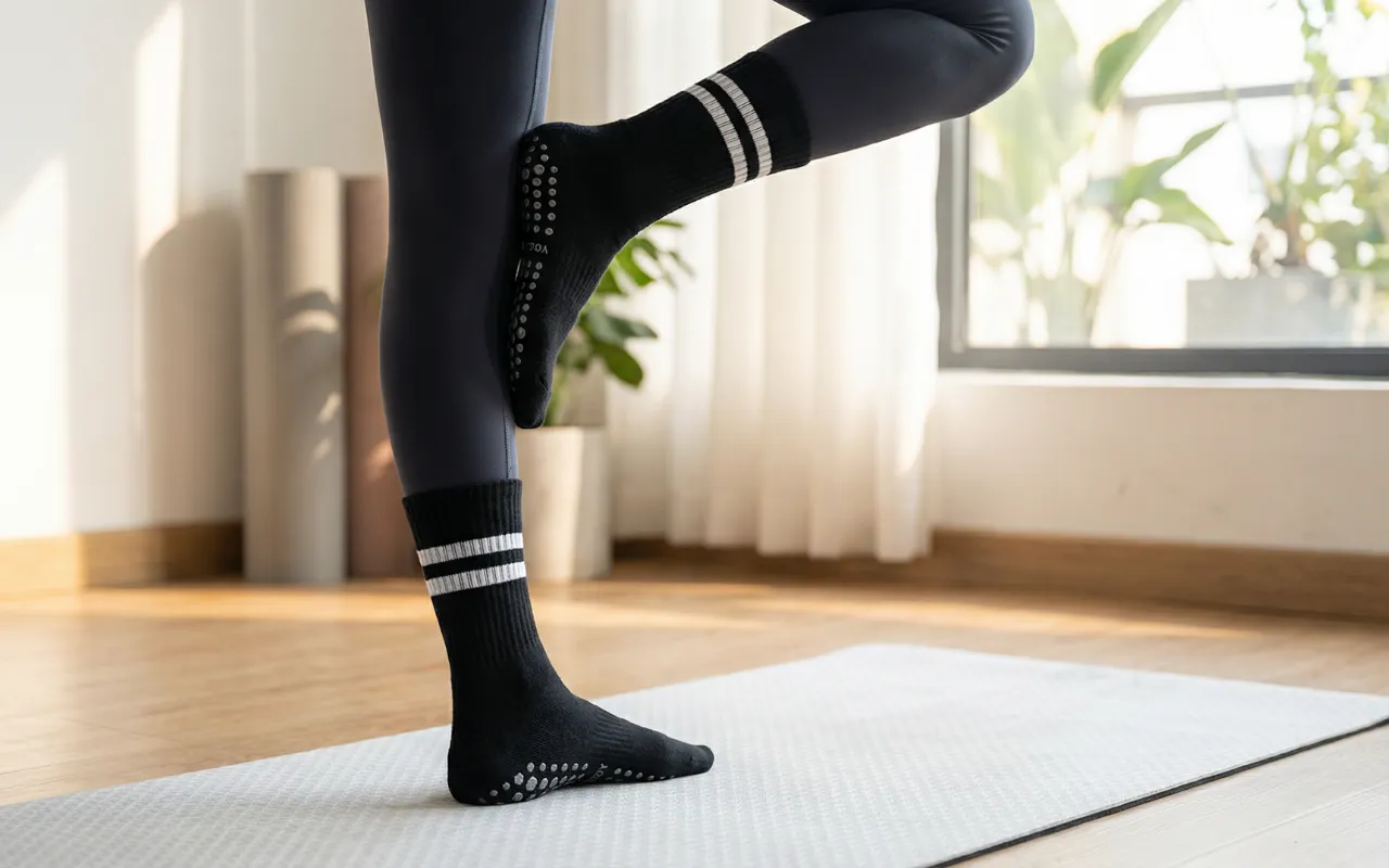 Puntos de silicona cubren la suela para el máximo soporte de tracción. Cada paso es estable, ya sea practicando yoga o pilates.