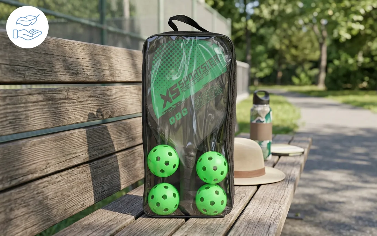 Dejo el juego en el maletero para las quedadas en el parque. Las palas se mueven con suavidad y la bolsa mantiene todo junto para que podamos jugar en cualquier momento.