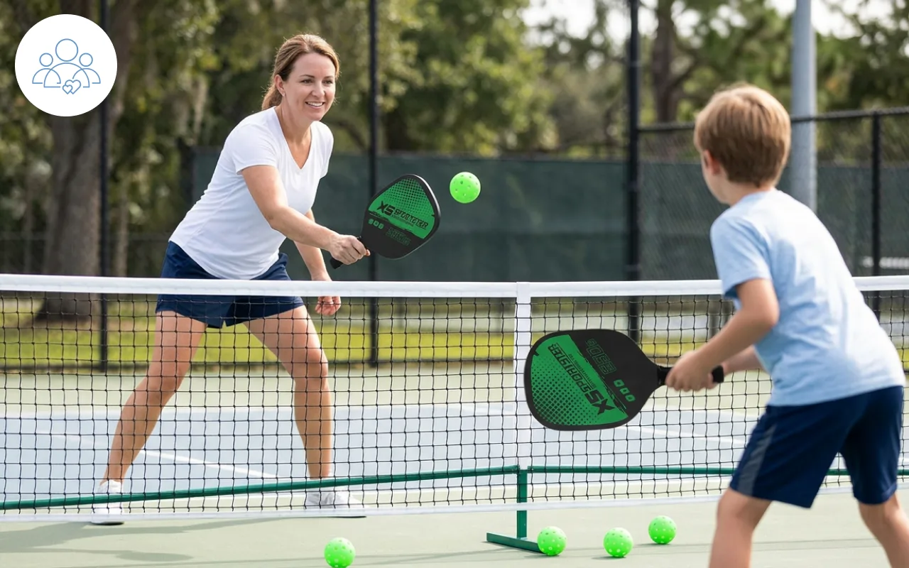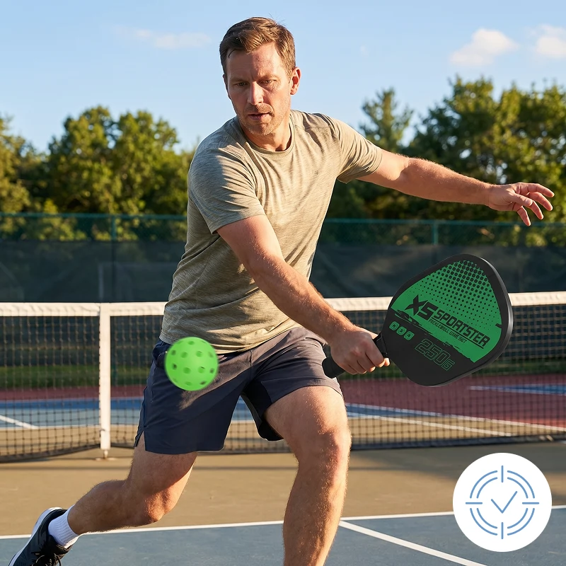 Uso estas palas con mi tía mayor. El diseño ligero y el agarre suave le permiten jugar más tiempo, y el bote constante mantiene los peloteos sencillos.