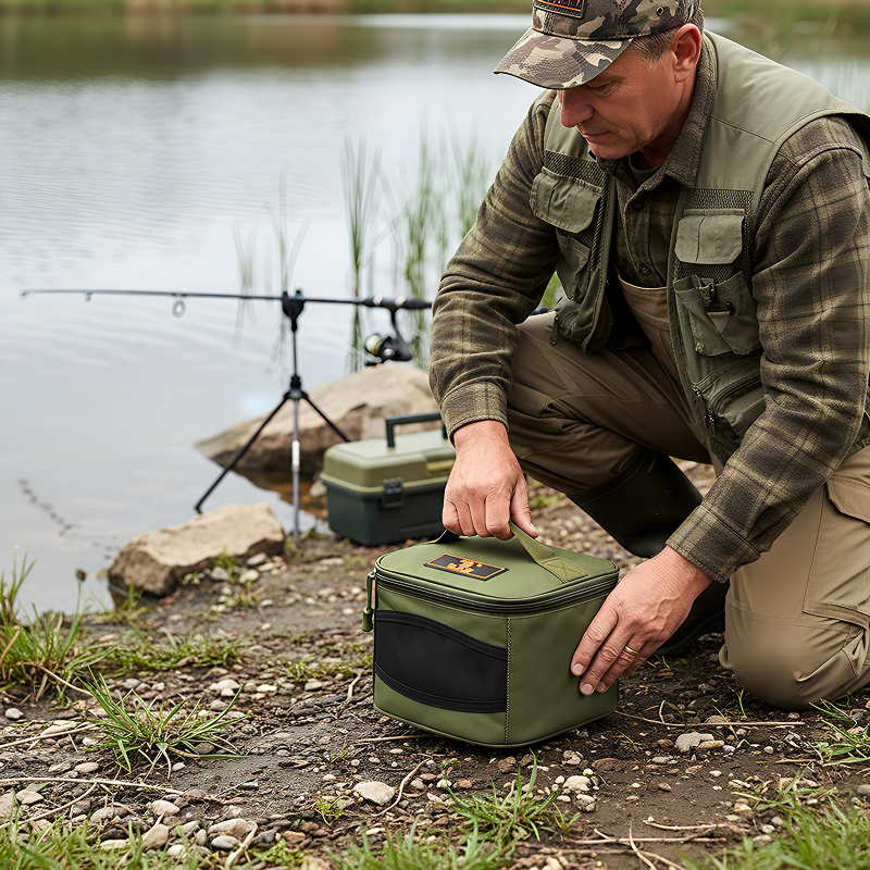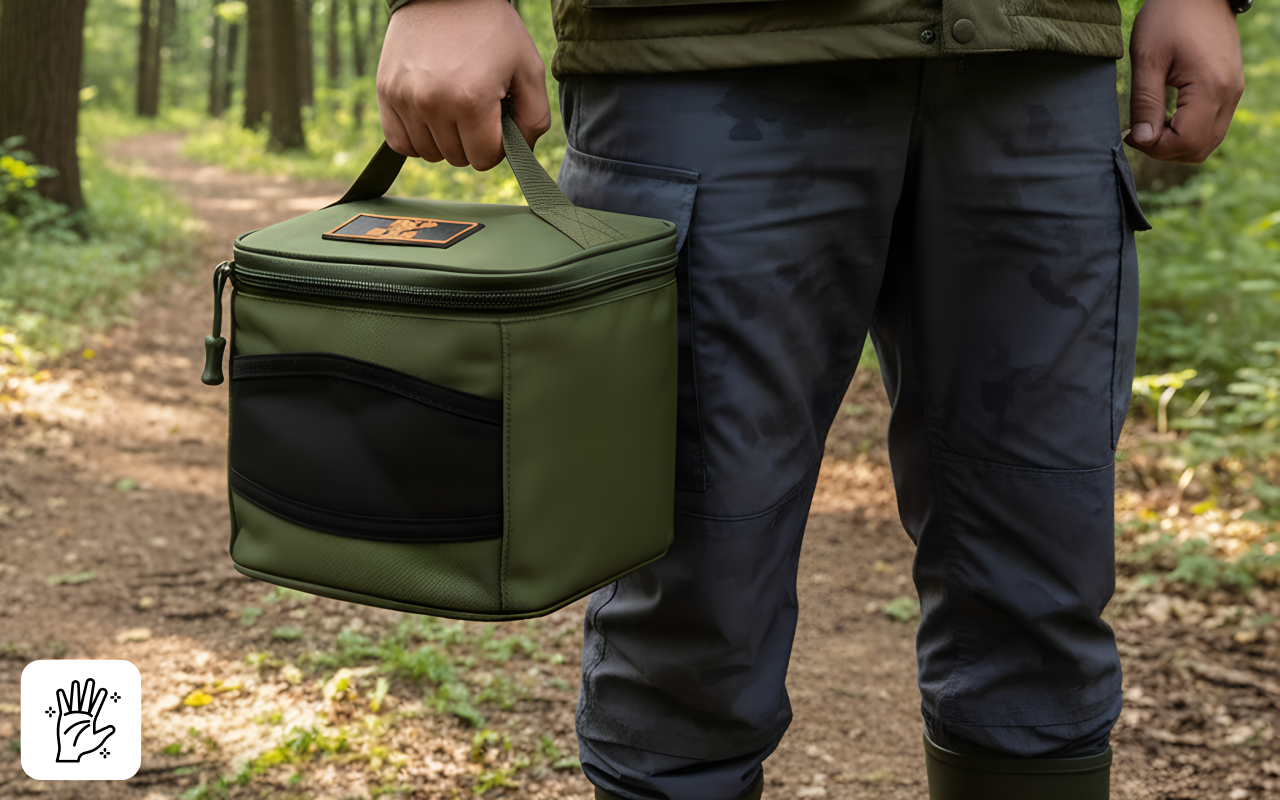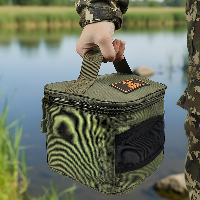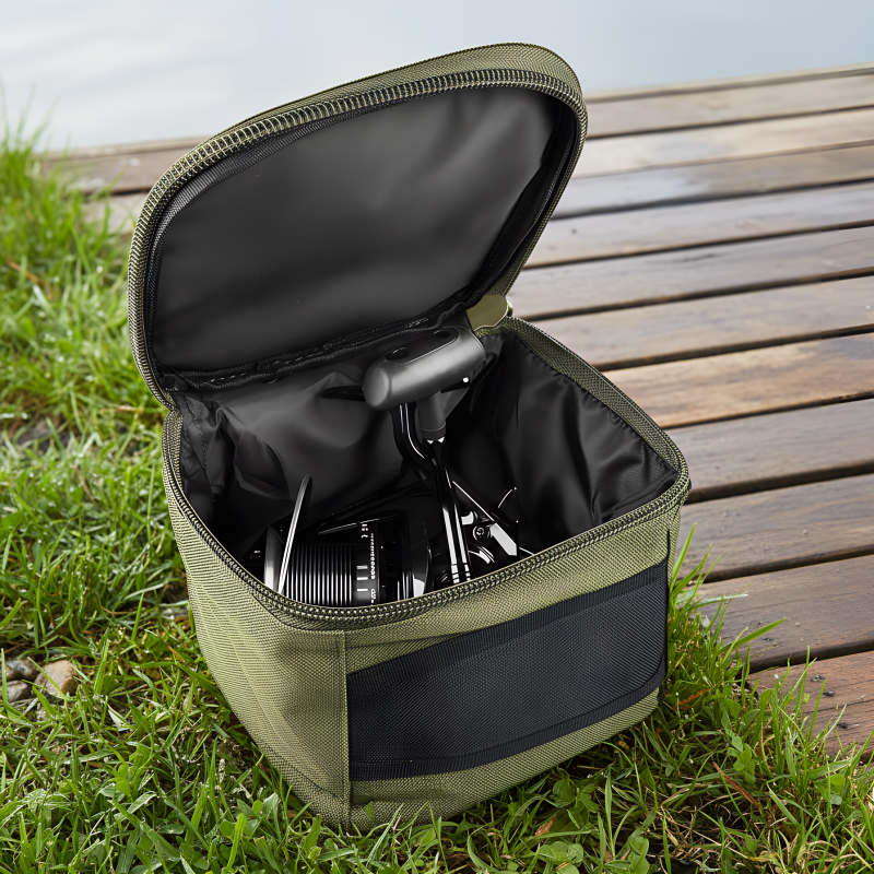 Esta bolsa para carretes es súper ligera. Nunca se me cansan las manos al llevarla, incluso en jornadas largas de pesca.