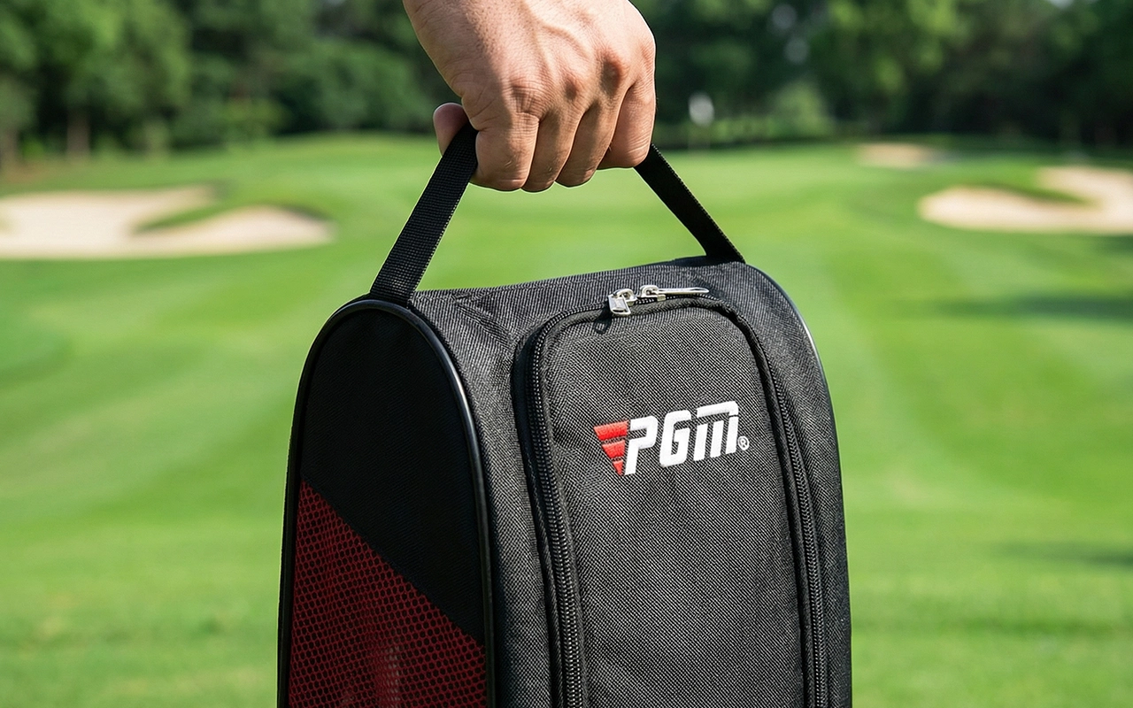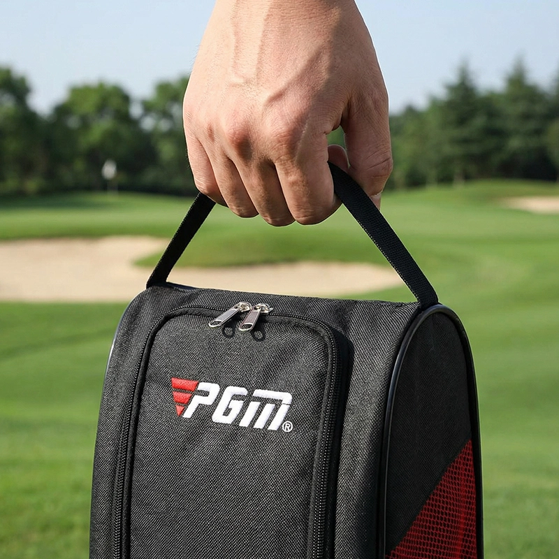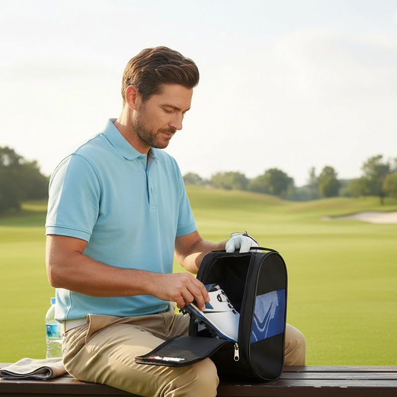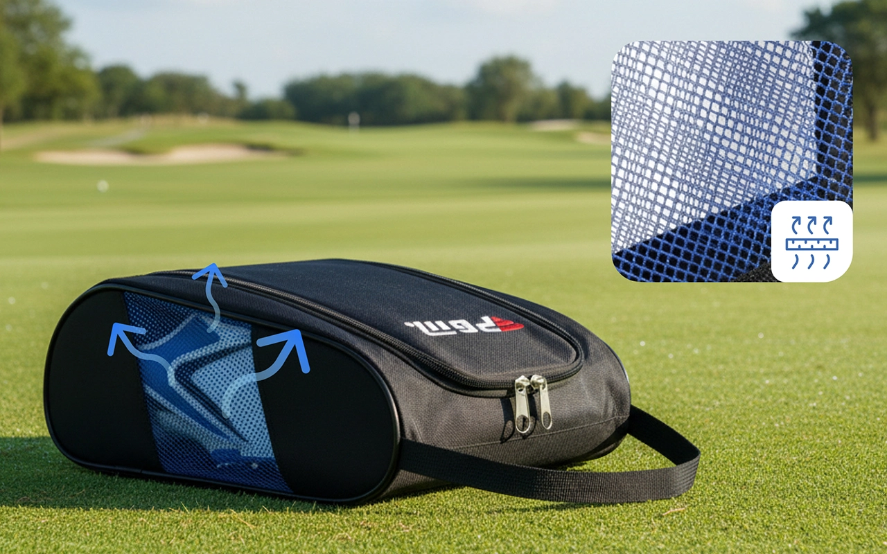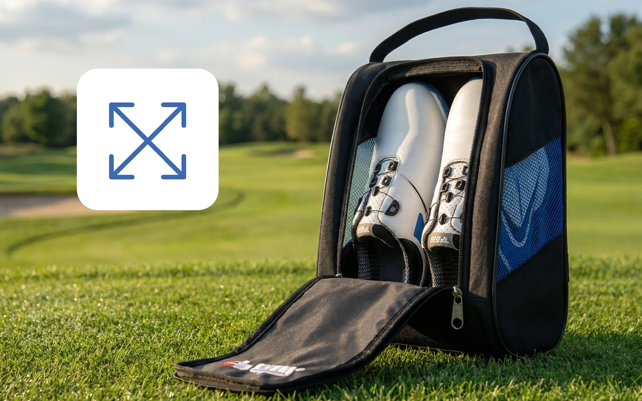Esta bolsa para zapatos mantiene mis zapatos de golf frescos y secos entre partidas. Los lados de malla son geniales y me encanta lo fácil que es empacar todo.