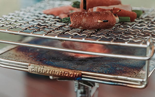 La mini parrilla facilita la preparación de alimentos al aire libre. Simplemente despliega, coloca el dispositivo sobre la fuente de calor y comienza a asar.