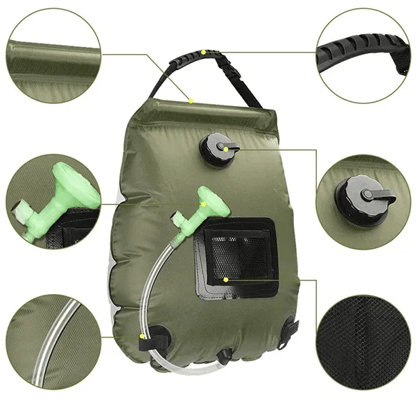 La Bolsa de Agua Threo es una solución confiable y eficiente para ducharse al aire libre. Puede calentar agua durante 3 horas bajo la luz directa del sol y contener hasta 20L/5 galones de agua, proporcionando de 8 a 10 minutos de baño continuo. Fácil de colgar y transportar — un accesorio ideal para camping, senderismo, mochilero y más.