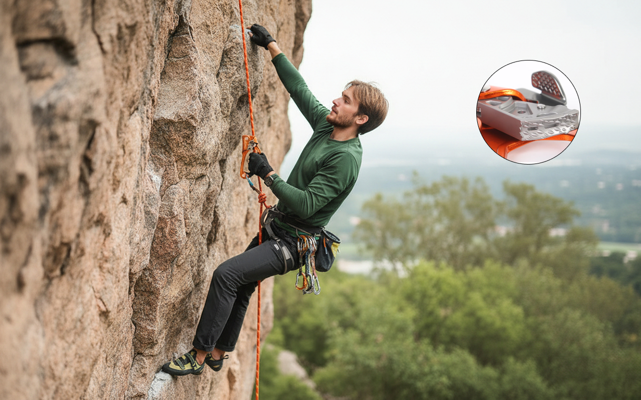Los dientes fuertes mantienen las cuerdas firmes en cada movimiento. Los resbalones y deslizamientos se evitan para una escalada segura.