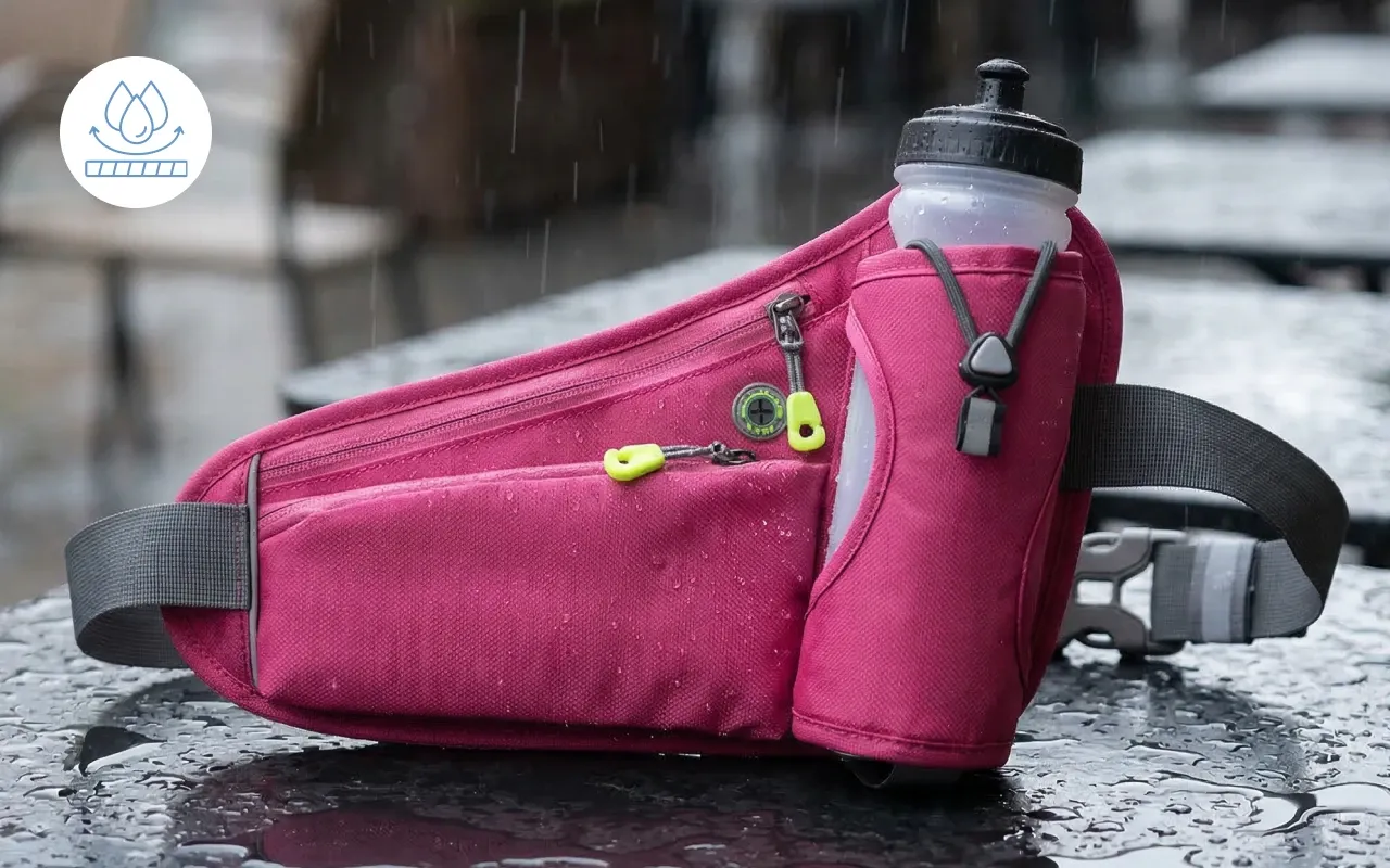 Tus objetos de valor se mantienen seguros de la lluvia y las salpicaduras en todo momento. El material resistente soporta cada carrera, caminata o paseo.
