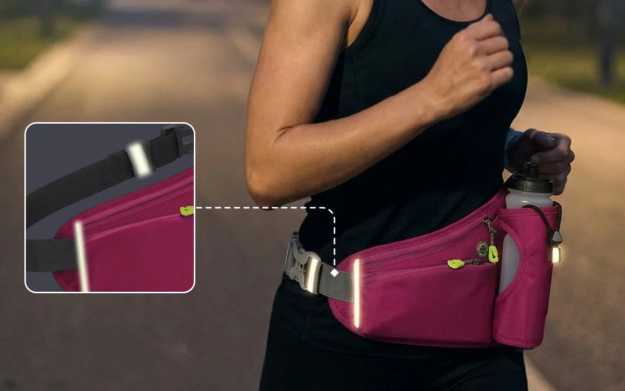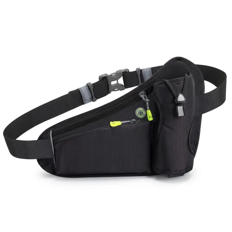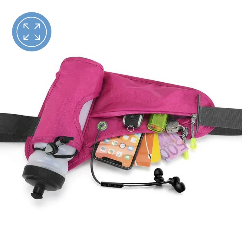 Compré esta riñonera para las caminatas de fin de semana. Se ajusta cómodamente a mis caderas, no rebota y el portabotellas mantiene mi bebida fácil de agarrar.