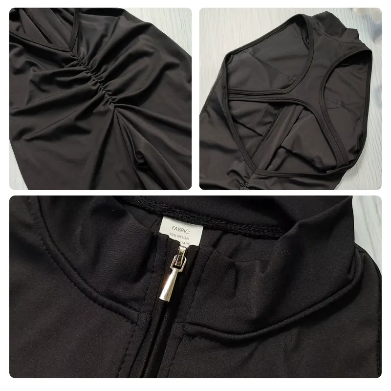 La cremallera frontal te permite cambiarte fácilmente antes o después de hacer deporte. El corte sin mangas te mantiene con estilo y fresca en los días ajetreados.