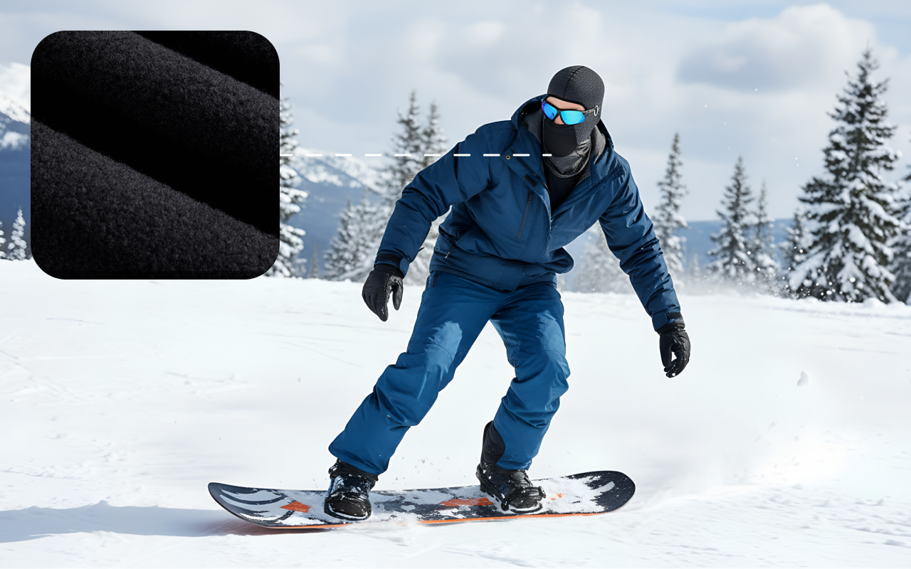 La felpa catiónica forma una fuerte barrera contra ráfagas intensas. Tu piel permanece protegida y libre de incomodidades.