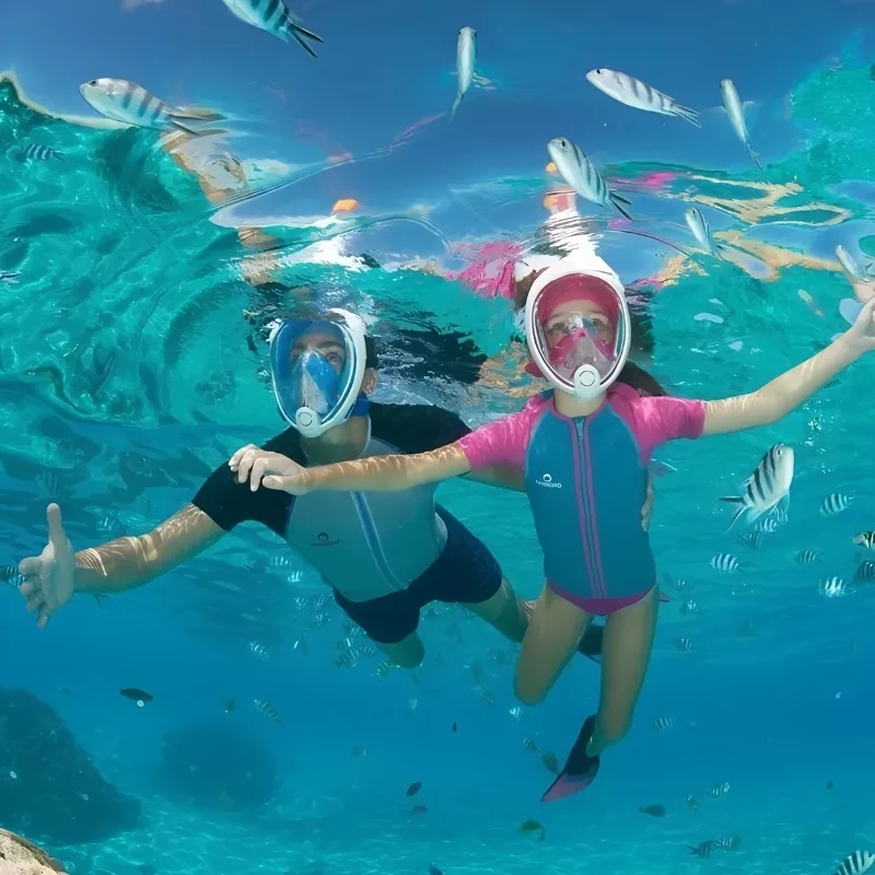 He probado varias máscaras de snorkel, pero esta las supera a todas. La vista panorámica es impresionante, y me encanta cómo evita el empañamiento incluso durante inmersiones prolongadas. Es un verdadero cambio de juego para la exploración submarina.