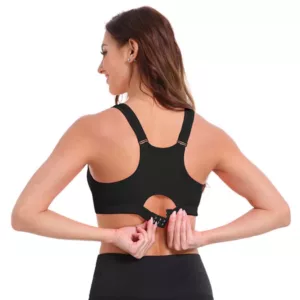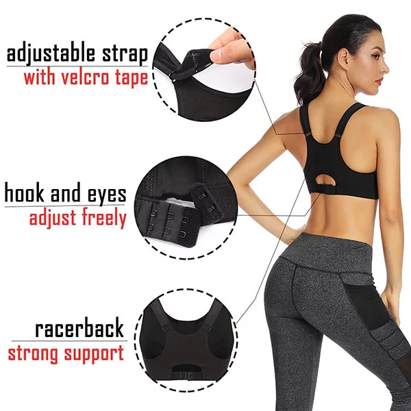 La tira para los hombros con forma de I protege eficazmente contra impactos y evita que el sujetador se desplace o resbale. El sujetador cuenta con una cremallera antideslizante y ganchos que evitan que se deslice hacia abajo durante el ejercicio. La banda de soporte ajustable en la espalda, similar a un sujetador diario con 3 juegos de ganchos, permite ajustar la talla de la copa.