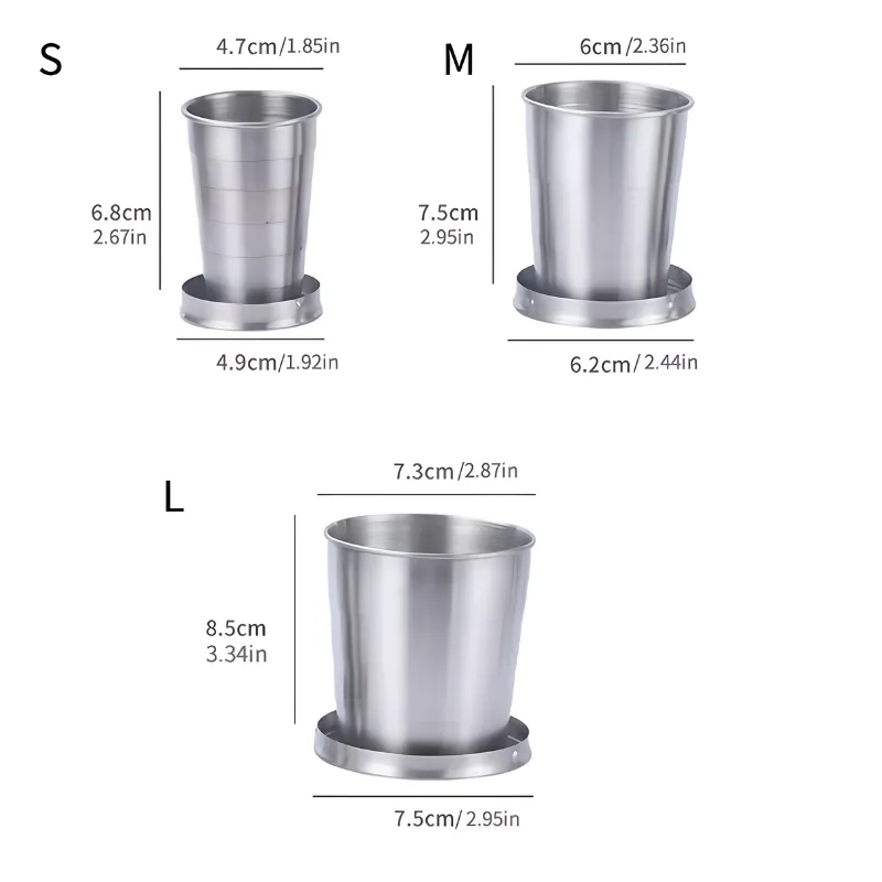 El tamaño justo para mi café de la mañana en el campamento. Se pliega plana y el acero se siente resistente.