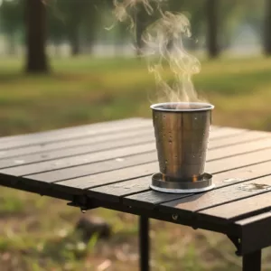 Perfecta para aventuras de campamento. El chocolate caliente sabe mucho mejor afuera, y la taza es fácil de enjuagar.