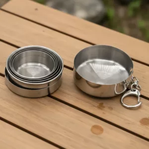 Me encanta esta taza de acero para los viajes de campamento. Sirve tanto para bebidas calientes como frías y nunca tengo que preocuparme por el peso.