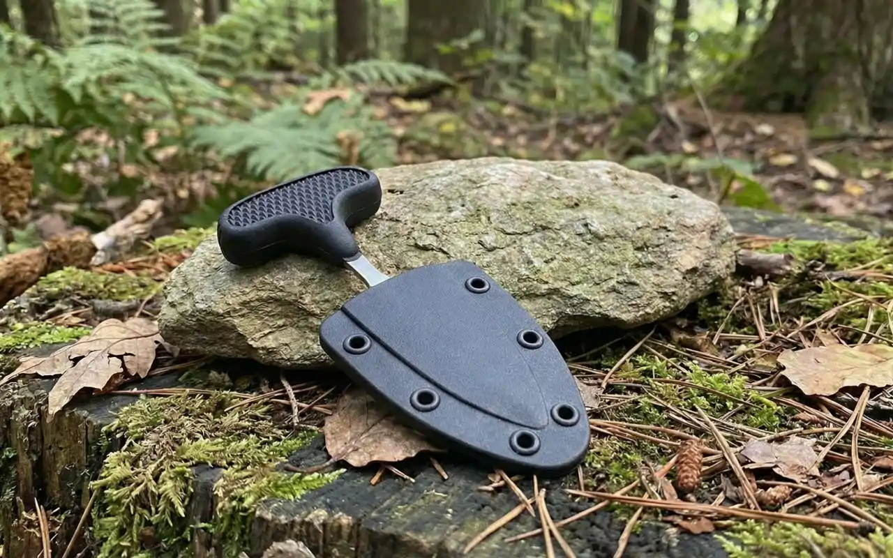 Guardo este cuchillo en mi caja de campamento. Se encargó de cortar bistec, afilar palos para asar y recortar cuerdas de lona. La funda mantuvo el filo lejos de manos curiosas.