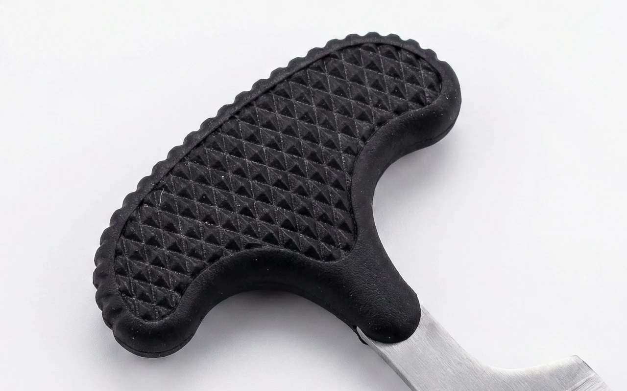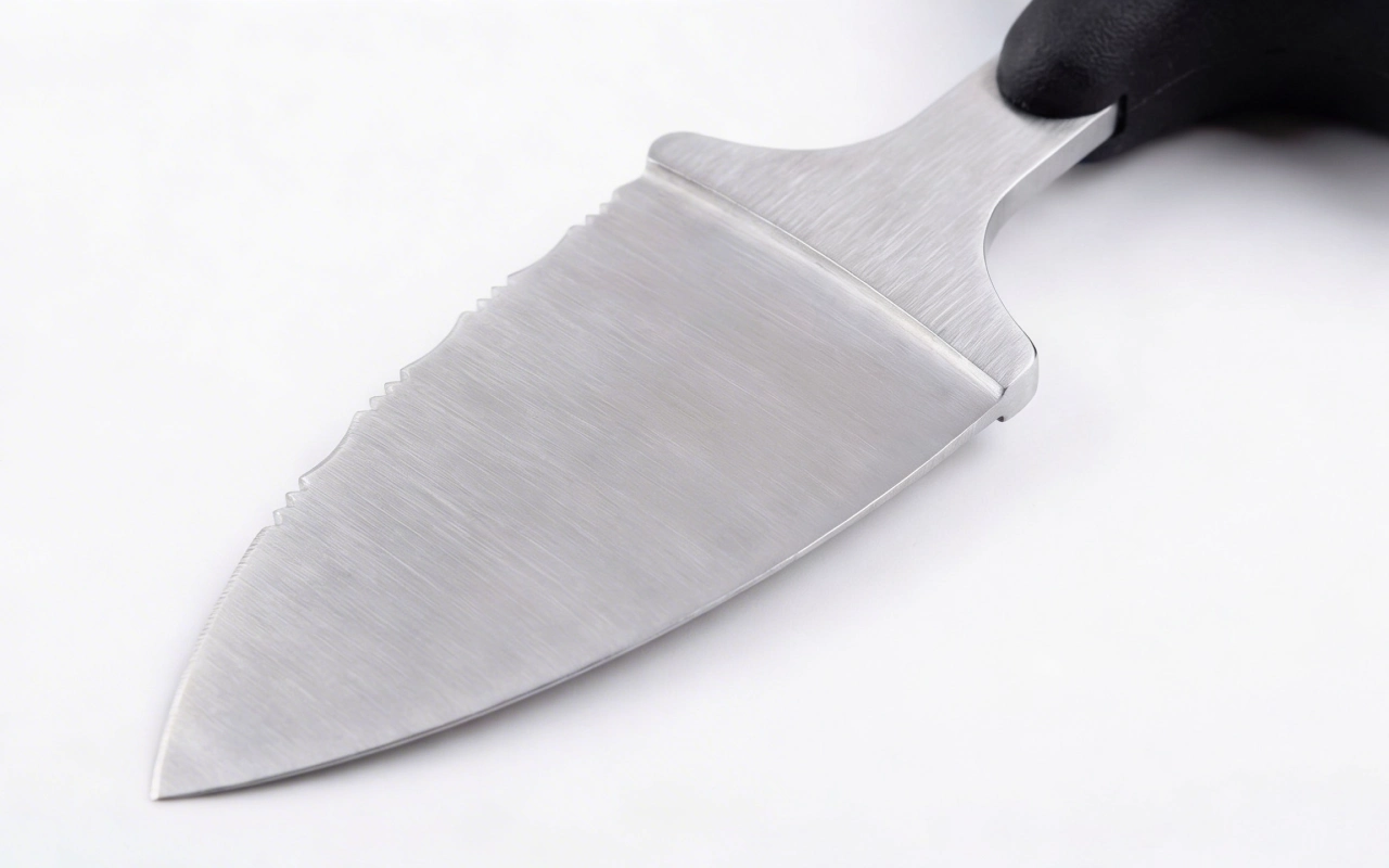 Compré esta hoja de campamento para mochilear. Es compacta pero resistente, corta verduras y salchichas fácilmente, y la textura del mango me da confianza en terreno mojado y rocoso.