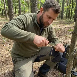 Llevé este cuchillo en un viaje lluvioso de fin de semana y manejó comida, cuerda y preparación de leña sin problema. La funda se mantuvo bien sujeta dentro de mi mochila.