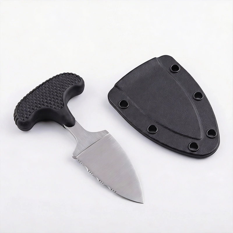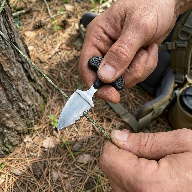Guardo este cuchillo de campamento en mi camioneta para las caminatas con mi esposo. Se desenfunda rápido, corta el paracord limpiamente y el mango nunca resbala, incluso con las manos sudorosas.