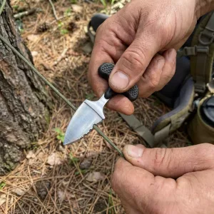 Usé este cuchillo durante un viaje de caza. Cortó rápidamente cuerda gruesa y envolturas de plástico, y el mango se mantuvo cómodo durante las largas y frías mañanas al aire libre.