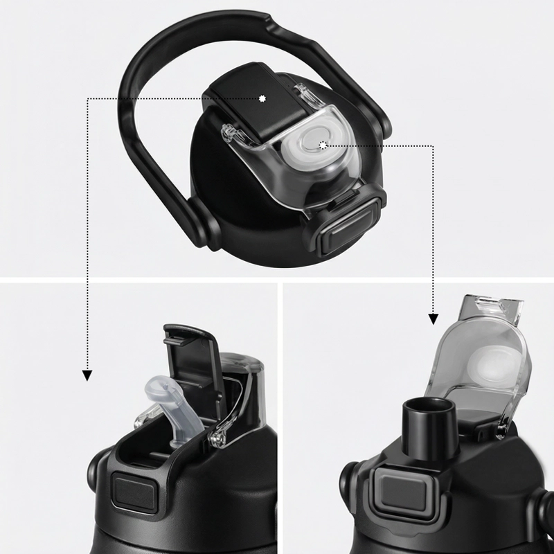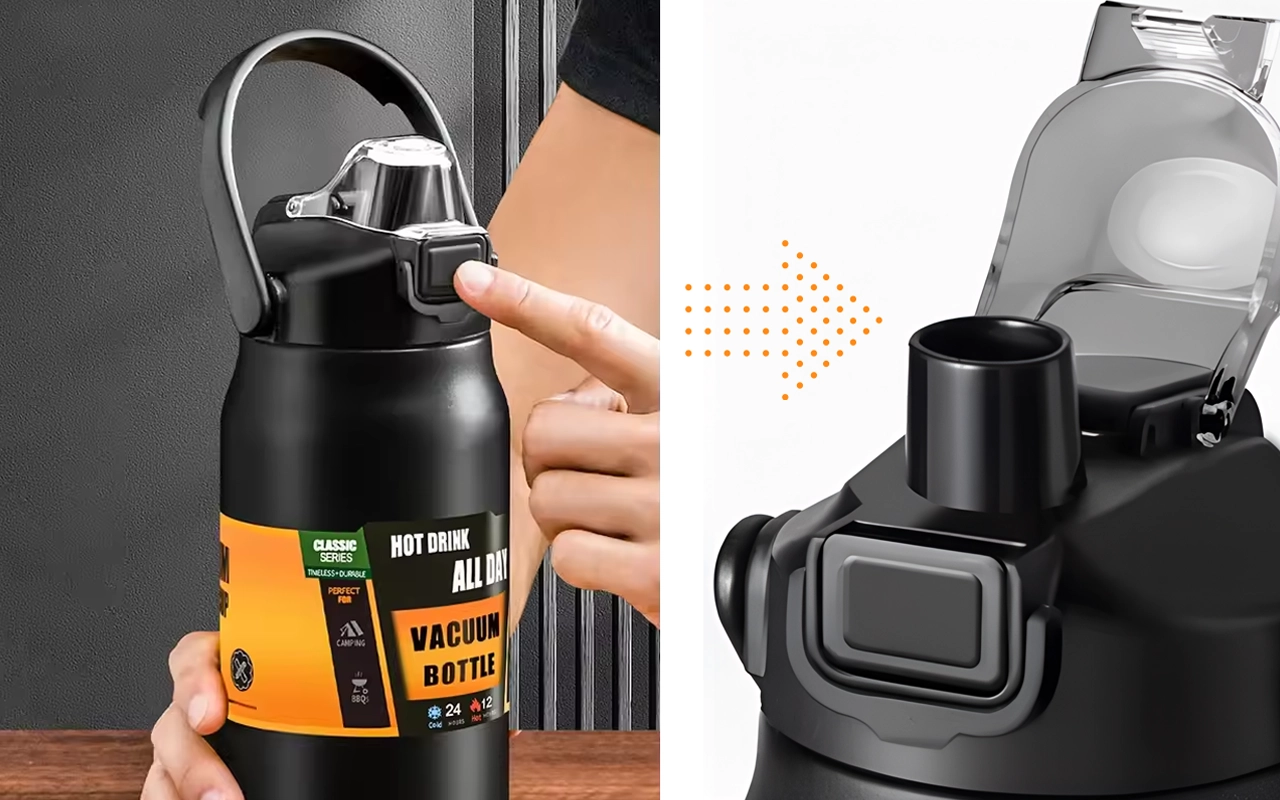 Un solo toque abre la tapa para beber al instante. La tapa a prueba de fugas y el seguro evitan derrames en tu bolso.