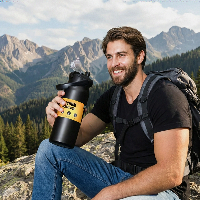 Las bebidas se mantienen perfectamente calientes o frías durante horas. La práctica pajilla abatible te permite beber rápidamente y sin complicaciones. Es fácil de limpiar y cabe perfectamente en bolsas. Elige hidratación confiable para cada viaje, en todo momento.