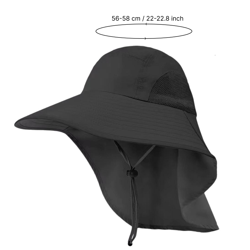 La tela de ala ancha ayuda a bloquear los rayos fuertes y evitar quemaduras. La solapa extendida brinda cobertura extra para el cuello y las orejas.
