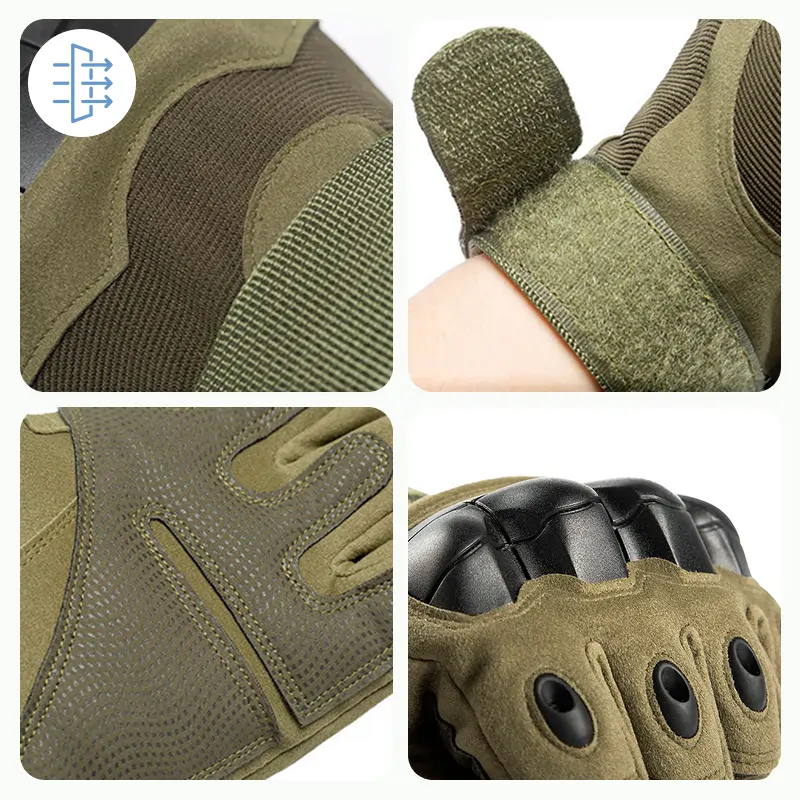 El acolchado reforzado protege los nudillos de golpes y raspones. La carcasa rígida protege los dedos sin limitar el movimiento natural.