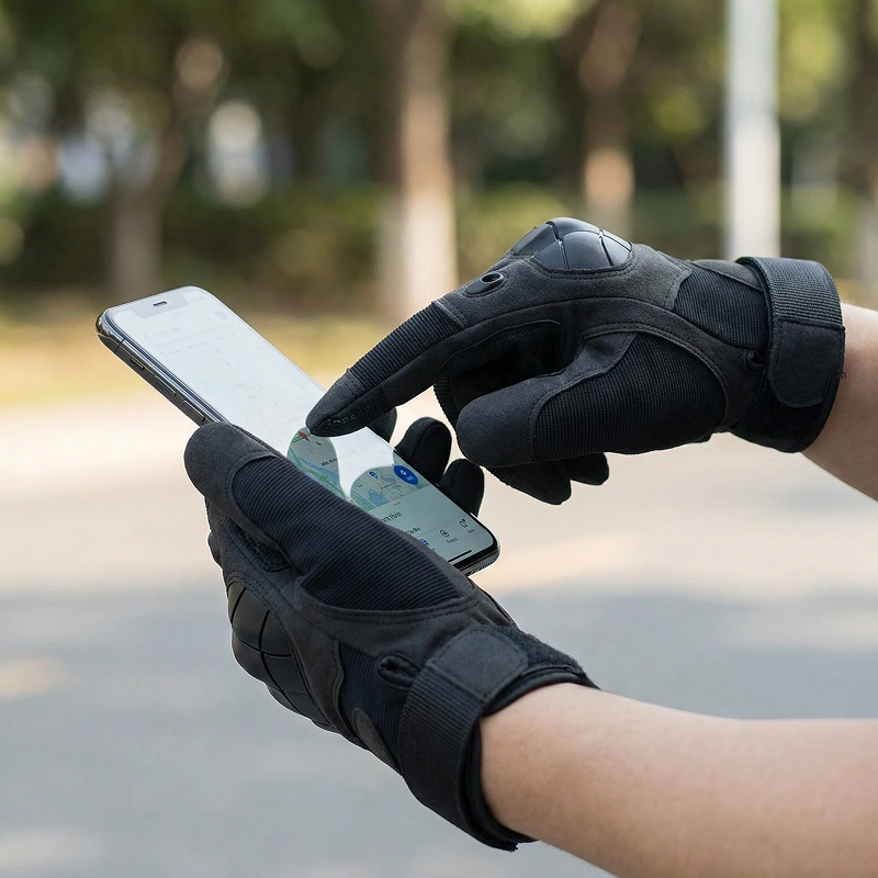 Usa tu teléfono sin quitarte los guantes Threo en el exterior. Mantente conectado dondequiera que vayas, haga sol o llueva.