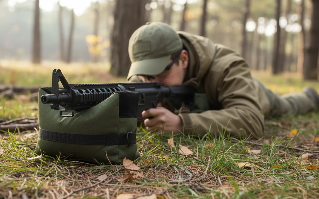 Me encanta lo fácil que es meter la bolsa MOLLE en mi mochila, y mantiene mi rifle firme sobre rocas o barro.