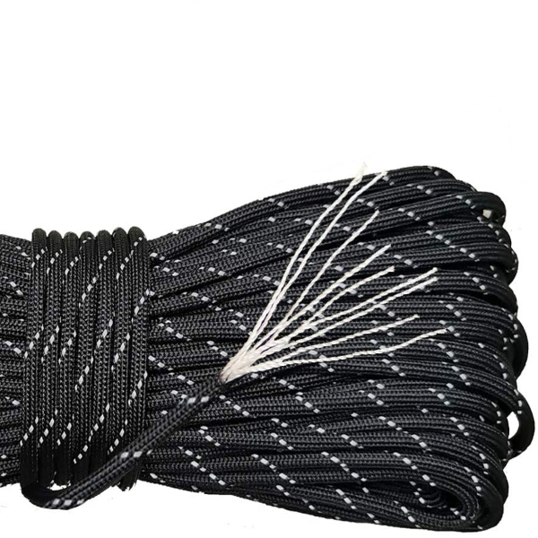 La paracord también puede usarse en muchos escenarios al aire libre, como camping, senderismo, pesca, rescate, caída de cuchillos, trampas, fabricación de armas y más. También puedes incluirla en tu bolsa de supervivencia. La cuerda de 550 lbs ofrece un equilibrio justo entre resistencia y flexibilidad. Nuestra cuerda multiusos THREO también cuenta con resistencia a la humedad, luz solar/UV, químicos y abrasión. Hay seda reflectante extra en la superficie de la cuerda que realmente destaca en ambientes con poca luz. La elección perfecta cuando necesitas usar el artículo de noche o en cualquier situación de emergencia.