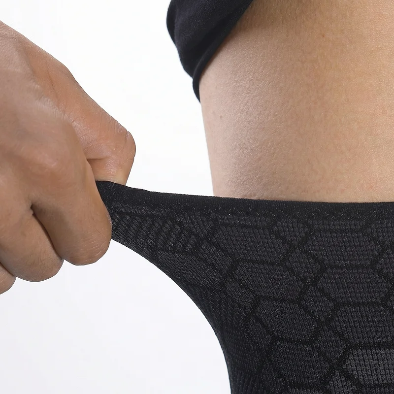 Compré el soporte para el isquiotibial adolorido de mi esposo. Lo usa bajo sus pantalones de trabajo y dice que alivia la rigidez y le ayuda a subir escaleras con menos esfuerzo.