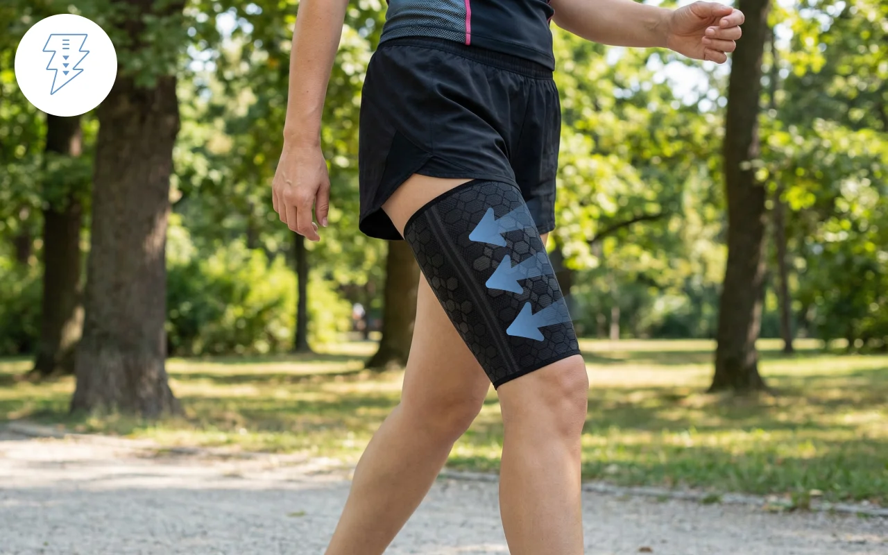Después de forzar mi isquiotibial corriendo en cuestas, la banda se volvió parte de mi rutina. La uso para caminar y hacer recados, y la compresión suave realmente calma la zona.