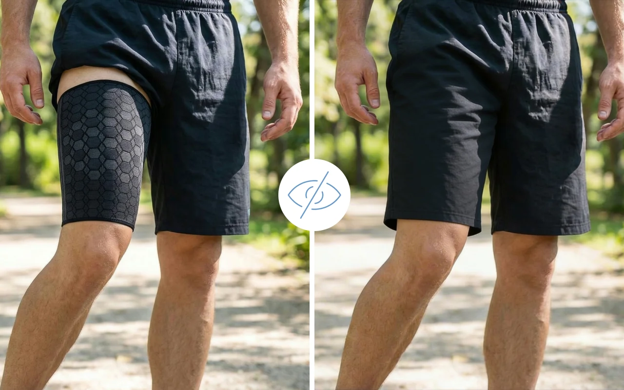Uso esta manga durante largos turnos en el almacén y mi muslo ya no palpita al final del día. Se mantiene oculta bajo mis pantalones holgados.
