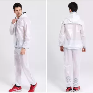 Este traje de lluvia se ha convertido en una parte esencial de mis actividades al aire libre. El material se siente duradero y transpirable, y es muy fácil de poner y quitar. Ha funcionado de manera excelente bajo lluvia intensa y viento.