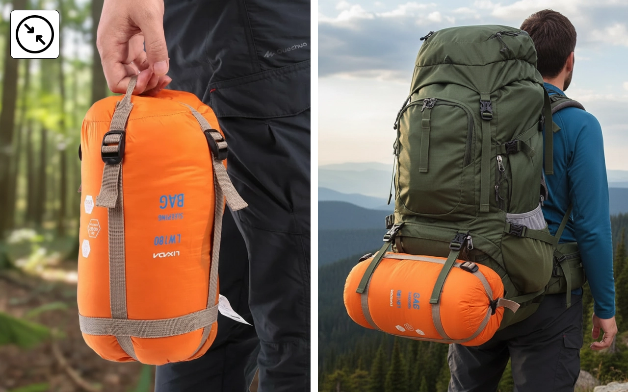 Saco super ligero, perfecto para excursiones. No se sentía voluminoso en mi mochila. Dormí bien incluso cuando hacía frío. También es fácil de cerrar.