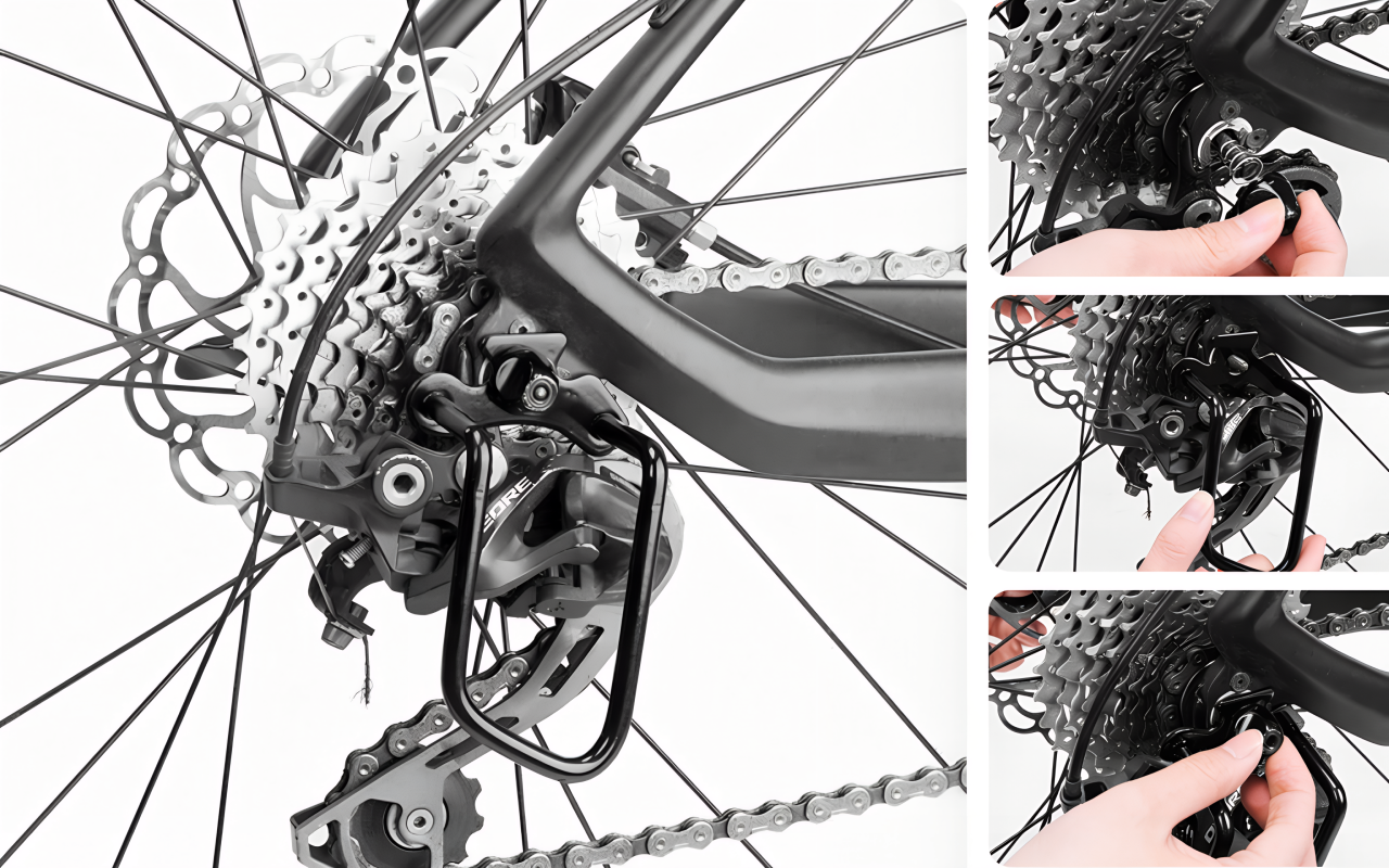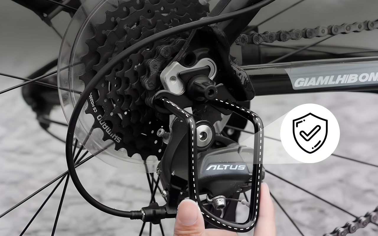 Nuestro protector de desviador garantiza que no interfiera con los pedales o las ruedas. Permanece discreto mientras ofrece una protección completa.