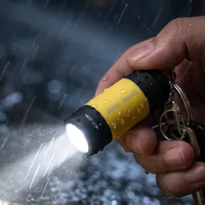 Llevé esta mini linterna a una caminata lluviosa y siguió funcionando perfectamente. Suficientemente brillante para el sendero y la carga por USB es muy práctica.