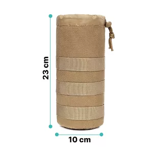 Lleva tu botella de agua sin esfuerzo con esta resistente y confiable bolsa. El sistema MOLLE permite una rápida fijación a tu equipo, facilitando la instalación. Su diseño robusto protege tu botella de impactos, para que disfrutes tu viaje sin preocupaciones.